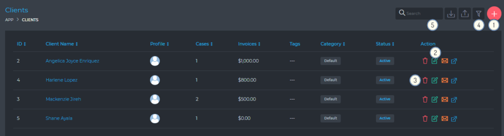 Managing your clients is very easy and intuitive. The place to start is the Client List Page.