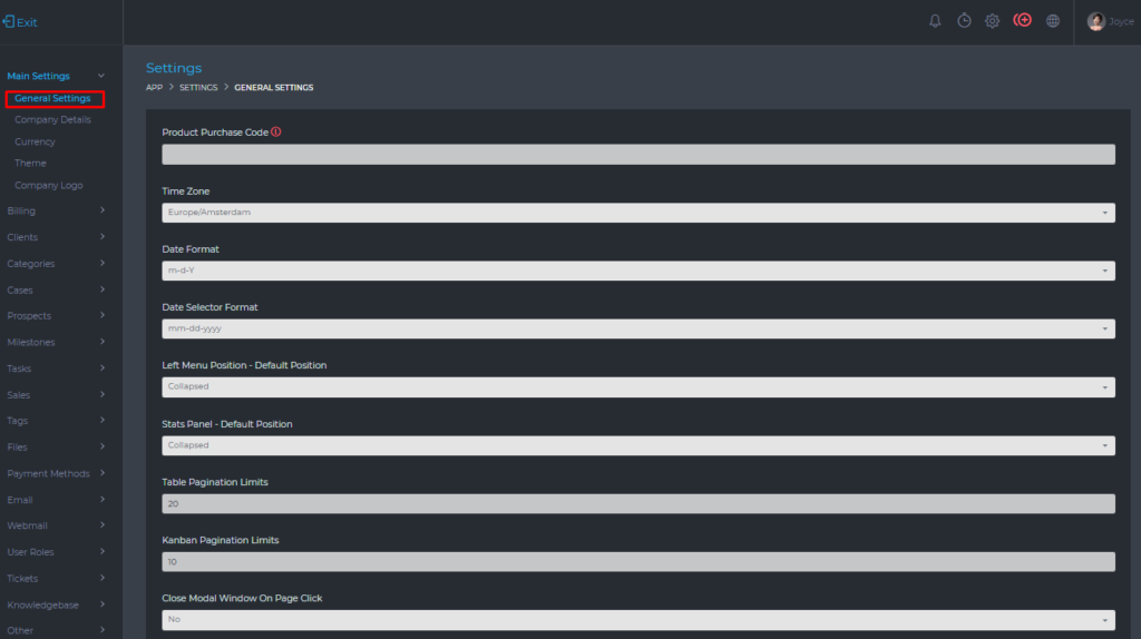 From this settings page, you will be able to set your application’s general settings. Each of the settings is further explained below.