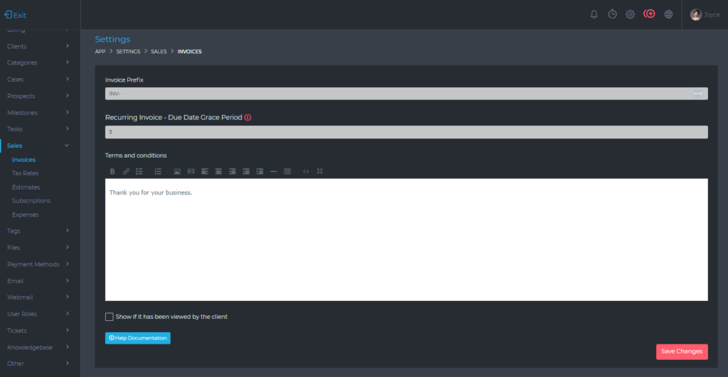 • Invoice Prefix. This is any text you want to be prefixed to the invoice number.